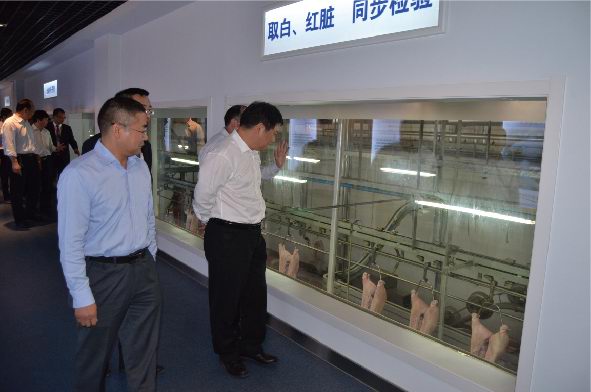 鮑市長(zhǎng)一行首先通過(guò)參觀廊參觀了公司生產(chǎn)現(xiàn)場(chǎng)。鄭寶振副董事長(zhǎng)對(duì)洛陽(yáng)市鮑市長(zhǎng)一行蒞臨洛陽(yáng)正大指導(dǎo)表示歡迎,并對(duì)洛陽(yáng)市政府一直以來(lái)對(duì)正大集團(tuán)在洛陽(yáng)項(xiàng)目的支持表示感謝。在公司三樓會(huì)議室,喬光斌總經(jīng)理匯報(bào)了洛陽(yáng)正大生產(chǎn)經(jīng)營(yíng)、項(xiàng)目建設(shè)規(guī)劃、食品安全管理、市場(chǎng)運(yùn)作模式、公司發(fā)展愿景等相關(guān)工作情況;鄭寶振副董事長(zhǎng)表示:洛陽(yáng)正大食品有限公司是集團(tuán)投資建設(shè)的***家生豬屠宰和豬肉深加工項(xiàng)目,集團(tuán)對(duì)該項(xiàng)目高度重視,利用正大集團(tuán)優(yōu)勢(shì),圍繞洛陽(yáng)正大100萬(wàn)頭生豬屠宰項(xiàng)目,在洛陽(yáng)地區(qū)打造從玉米種植、飼料加工、良種豬培育、商品豬養(yǎng)殖、屠宰分割、肉制品精深加工、冷鏈物流、連鎖專賣為一體的全產(chǎn)業(yè)鏈發(fā)展模式,確保產(chǎn)品的安全可追溯,下一步要高標(biāo)準(zhǔn)建設(shè)洛陽(yáng)正大深加工項(xiàng)目,并將在洛陽(yáng)周邊偃師、宜陽(yáng)、伊川、孟津等區(qū)域拓展安全豬源養(yǎng)殖基地,洛陽(yáng)正大食品有限公司向洛陽(yáng)市民提供安全、健康、營(yíng)養(yǎng)、美味的正大食品,希望市政府在洛陽(yáng)正大深加工項(xiàng)目建設(shè)和生豬養(yǎng)殖建設(shè)方面給予支持和幫助。