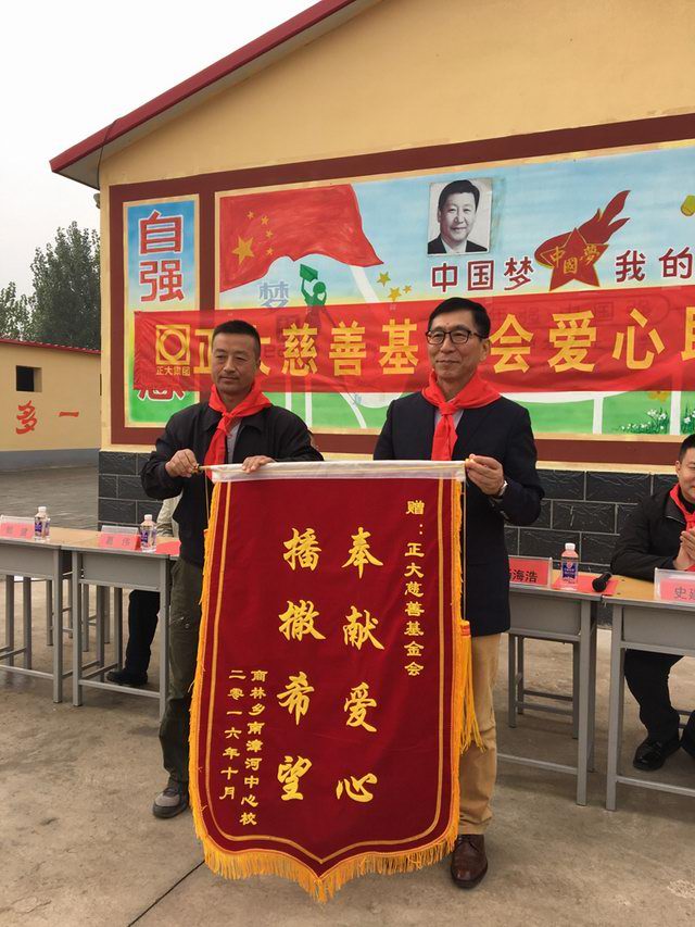 南漳河小學感謝正大慈善基金會的愛心善舉,并贈送錦旗。