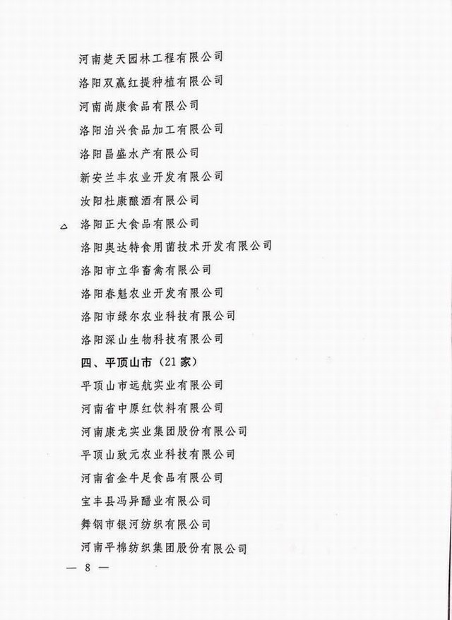農(nóng)業(yè)產(chǎn)業(yè)化省重點(diǎn)龍頭企業(yè)2016.10.24 發(fā)布時(shí)間:2020-01-15來源:洛陽正大食品有限公司點(diǎn)擊:16019 上一篇:出口食品生產(chǎn)企業(yè)備案證明 下一篇:56.河南民營企業(yè)現(xiàn)代農(nóng)業(yè)100強(qiáng)